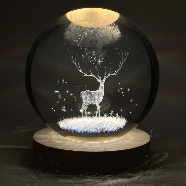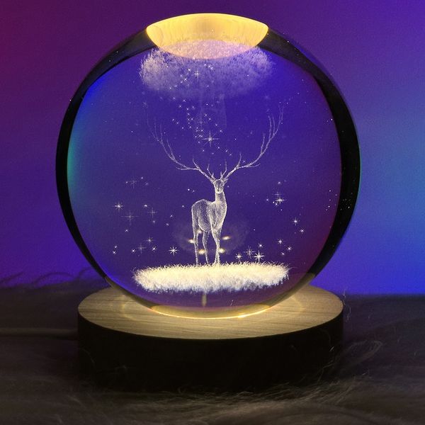 این چراغ خواب کریستالی سه‌بعدی با طرح زیبای گوزن، جلوه‌ای خاص و جذاب به اتاق خواب شما می‌بخشد. گوی شیشه‌ای از کریستال فشرده، درخشش زیبا و حس لوکس بودن را به فضا اضافه می‌کند و هر بیننده‌ای را مجذوب می‌کند.