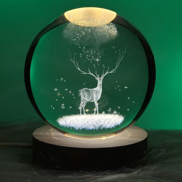 چراغ خواب کریستالی سه‌بعدی طرح گوزن – دکوراسیون شیک و خاص